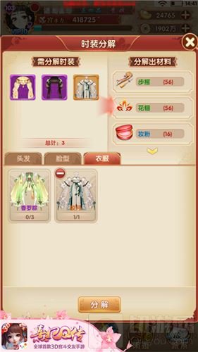 当然了,如果有财大气粗的小主不慎囤货了,时装分解功能也可以助你一臂之力,把衣帽间收拾收拾,好留地方给新款美装啦。