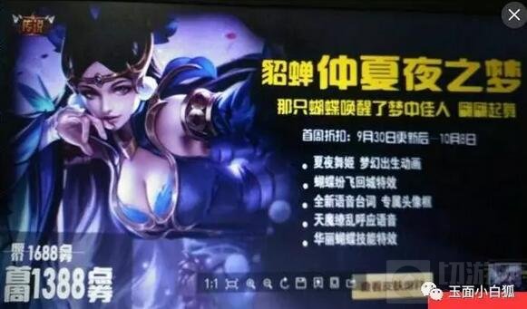 据悉该消息是来源于网上的一张图,上面写明了貂蝉的皮肤上线时间及价格,如下