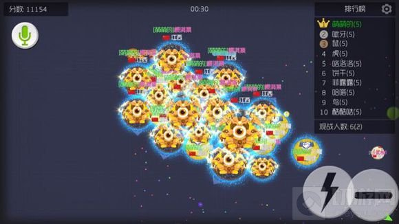 将射出小球往精华分身(即最大分身)的移动方向走,然后点击闪电,移动最大分身吃小分身,优点是能快速吸食分身,缺点是重量损失较多。