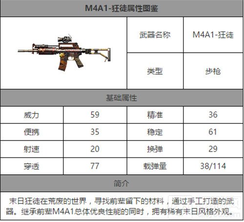 CF手游新出了一把步枪——M4A1-狂徒,那么CF手游M4A1-狂徒怎么样呢?今天小编就给大家带来M4A1-狂徒属性图鉴,感兴趣的小伙伴随小编一起来看看吧!