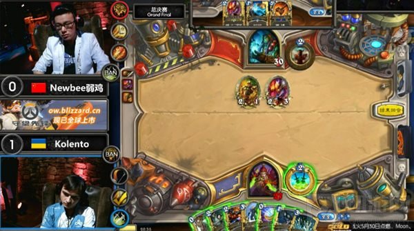 2016《炉石传说》黄金国际挑战赛——中欧对抗赛总决赛已在昨日(5月29日)晚上21:30落下帷幕。年仅19岁的中国选手"天才少年"Newbee弱鸡在四强赛中连克劲敌夺得了最终冠军,而卫冕冠军Kolento获得亚军,Ostkaka和SuperJJ分列三、四名。下面让我们来回顾一下,最后一个决赛日4名炉石顶尖选手的精彩表现吧。