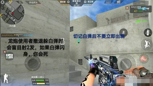 敌人肯定会提前用龙炮开路,试图炸伤守A小道的敌人,龙炮炸响的时刻,就是你手雷反弹的机会,这颗雷一般会很容易落在敌人附近。枪口时刻瞄准爆头线,闪身等待敌人出线的那一刻,击杀残血。如此,战略性撤退,以柔克刚,即可打击龙炮系列!