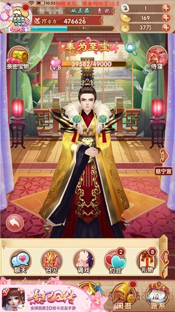 当然啦,约会之前必定还需谈情说爱一番,每个约会项目都新增了剧情对话。小主们可以与皇上一边说着绵绵情话,一边发射充满爱意的秋波,淡妆浓抹两相宜哦。约会中依然会产出主角经验和礼物材料,所以小主们千万不要害羞,大胆表露出自己的情意,向英俊皇上发起约会吧!