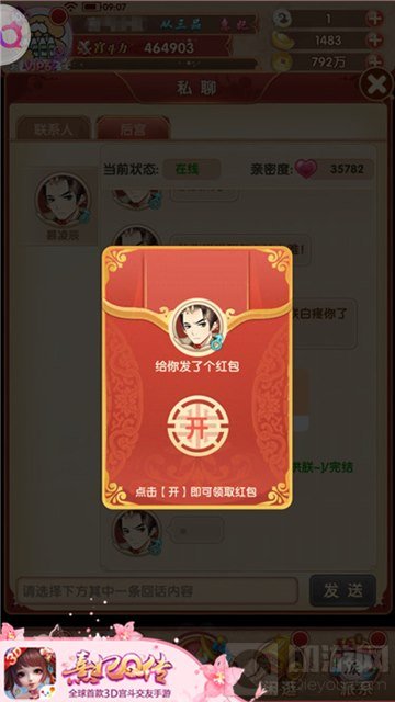 自慕凌辰登基以来,四海昌平、国泰民安,百姓安居乐业,大楚的税收连年增长、国库充裕,连带着皇上的小金库也随之钵满盆盈。这不,体恤嫔妃的皇上在聊天的时候,还时不时给爱妃发个小红包,增加一下相处中的小情趣。所以,还不赶紧点开对话框,向皇上传达爱意吧,谁知道今天将会得到什么惊喜呢!