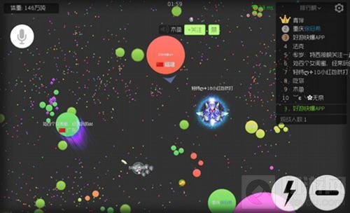 通过小球拉大地图扩张视野,观察附近的情况,如上图,我的下方有大球,左侧的球在炸刺,这种情况就可以去左边追杀正在炸刺的球。