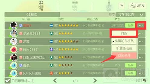 球球大作战订阅作用:对关注的人进行订阅,订阅的人上线,开始比赛时你可以获得提醒。