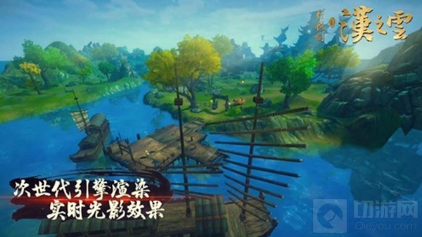 在画面表现上,汉之云手游采用次世代引擎渲染,成功在手机端引入实时水面反射技术,场景中大部分为面积光源,水面特有的反光效果,让画面的明暗变化和阴影效果更加细腻。