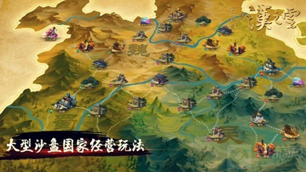 作为轩辕剑首款大地图3DMMO手游,《轩辕剑之汉之云》故事背景设定在三国时代,开发组为了让玩家更有代入感,按照古三国疆域进行了等比例还原,32幅大地图将魏蜀吴三国的地貌风采一一展现。从白雪皑皑的塞外地区,到沙漠覆盖的西域,再到吴侬水乡的南方古镇,横跨整个中原地区。在以国家经营玩法为核心的沙盘国战中,玩家可以自由探索汉之云3D大世界,攻城略地、运筹帷幄,天下大势尽在自己手中掌握!