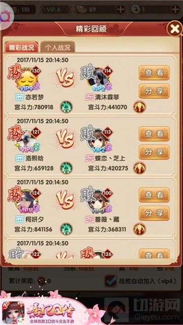 在每位小主的战斗过程中,都可以为自己的阵营增加士气,同时自己也将获得功勋值。当然了,精彩的对决还需细细品味,在战斗结束之后小主们依然可以回顾和分享激战过程,仰望一下大神们的红将队列,或是学习一下出奇制胜的随从阵容,何乐不为?小主们自己的个人战况也将在游戏中贴心地完整显示,赢在哪里输在何处,统统一清二楚,为自己的宫斗力提升提供一条高速捷径!