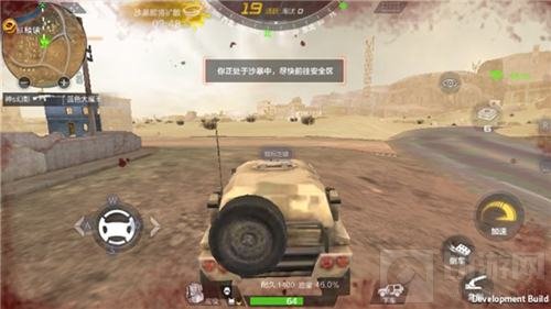 4.沙暴在开局之后1分钟出现第一次扩散,之后每接近3分钟扩散一次,如果我们身处沙暴之中会受到持续伤害,所以在寻找道具的同时要注意安全区的范围,减少不必要的伤害。沙暴边缘有着很明显的分界线,注意观察。