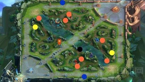 最后说下黑点。黑点处和河道草丛之间有一水之隔,从河道草丛去黑点的时候,中间会暴露自己。因为在同一个草丛中可以看见对方,所以有经验的埋伏者会在黑点处埋伏,等待时机开团。、