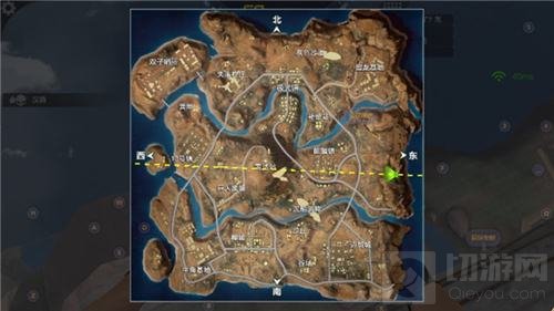 ② 在地图的中部分,从西往东依次分布着营地、13号镇、巨人废墟、雷达站、沉船河畔、麒麟镇这六个建筑群,其中沉船河畔位于中部地图与下半部分地图之间。
