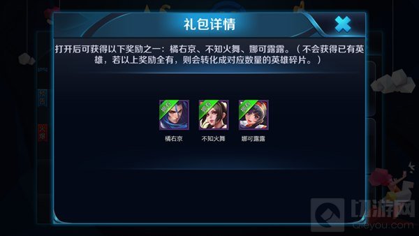 感恩节礼包“欢”:获得橘右京、不知火舞、娜可露露其中之一