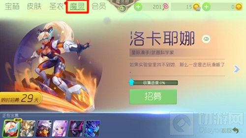 在魔法屋上方圣衣按钮的旁白增加了魔灵按钮,点击魔灵即可查看到全新的魔灵皮肤。目前球球一共有六款魔灵皮肤可供大家选择,如果我们某一个魔灵旁边的进度条显示100%的时候,那就说明已经凑齐所有材料了,这时候点击下面的“招募”按钮即可招魂出魔灵。