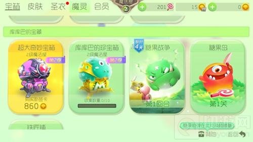 想要获得魔灵,我们点击左上角的“宝箱”按钮,进入宝箱系统,在这里增加了全新的“糖果战争”,我们可以从这里面获得魔灵材料。