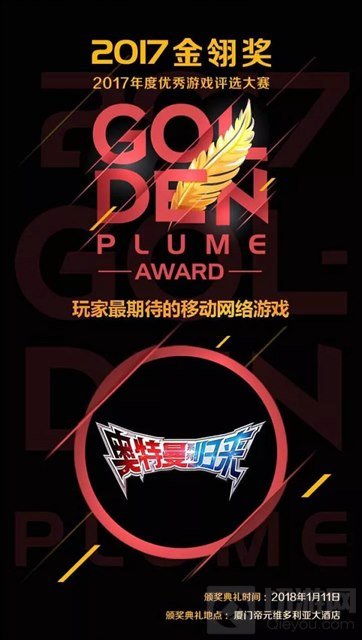 11月16日,《奥特曼系列归来》荣获2017金翎奖“玩家最期待的移动网络游戏”大奖!