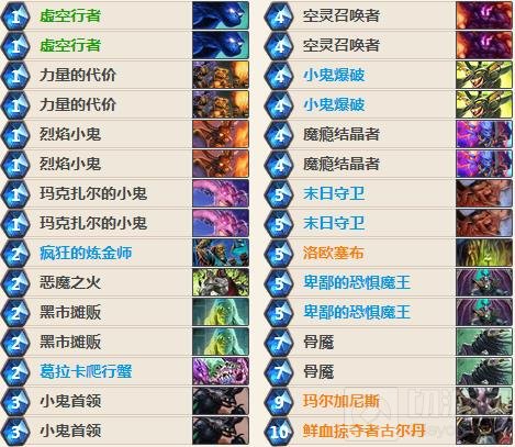 5、小鬼爆破带吗?原帖是带了1张的,我后来坚决带2张。这牌强度真心爆表,且给了术士最缺泛的返常能力,对海盗站特别好用,一波小鬼再来个魔影结晶者的BUFF,强无敌。虽然会污染DK的复活,但是还是要满编,4费的返场牌绝对比10费的铺场牌重要多了。