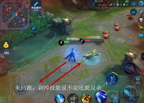 适用于对面是靠技能攻击的法师之类英雄,一般有延迟的技能都会往你前进的方向释放,这个时候你反而可以往回走甚至可以跟回去跟他重叠一起,这样就能扰乱他视野,说不定能反杀他呢。