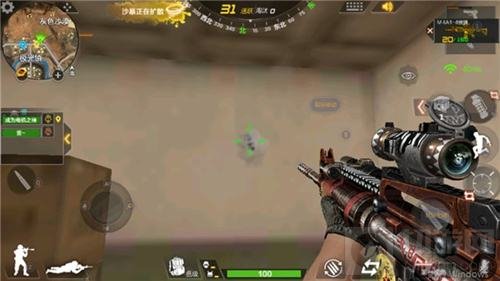 四倍镜的M4A1与二倍镜大同小异,观察射击距离一般都大于任何一个建筑群的直径范围,所以,当我们处于一个平坦建筑群的周围,或者从一个建筑群到另一个建筑群的过程中,最好利用倍镜模式先观察一下敌情,在靠近目标,这样就可以减少被伏击的可能性,而当我们发现敌人在100米左右的距离时,就不要用倍镜模式,因为这时候敌人离我们较近,倍镜模式不利于快速跟踪移动的敌人射击,很容易被敌人抢占先机。