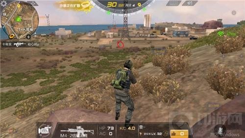 图中是我以观战形式观看我的小伙伴以M4A1二倍镜对远处敌人进行射击的情况,图中红圈位置就是敌人所在,肉眼基本难以分辨敌人的身形,只能看出他的移动方向,这种情况普通步枪很难干掉敌人,但我的小伙伴在倍镜模式下,7发子弹终结了对手,可见倍镜的重要性。