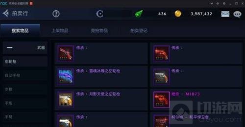 小编点开武器项尝试搜索,可以看到系统根据不同种类把武器进行了分类。小编点开“左轮枪”看到一排排左轮枪显示出来,右下角的数字代表该武器的上架数量。点开后可以看到不同的价格,当然只能用DNF手游专属货币——泰拉币购买。