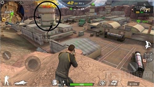 但是要消息一个地方,那就是左边的灯塔,敌人可以通过爬上灯塔,更我们拥有相同的地理位置,跟我们互怼,这时候我们要注意角色的左右移动,因为我们在跟远距离敌人对枪时,准心是不那么容易瞄准的,开枪5次才中2-3次,而且我们所站的位置空旷,没有掩体可以防御,而敌人可以透过灯塔的窗口来跟我们交火,所以,边射击,边左右移动成为我们主要的操作技巧。