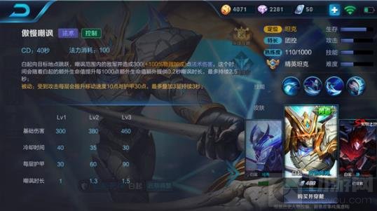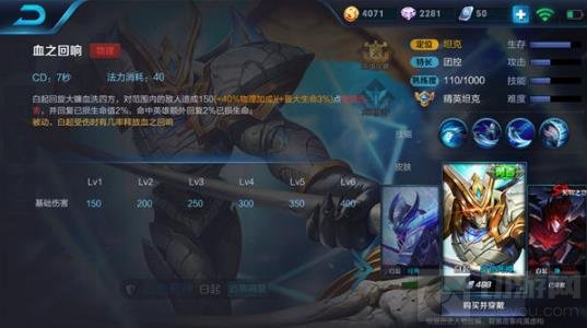 解析:团控神技,并具有位移效果,可以将范围内的敌人嘲讽,并造成一定的伤害;另外在白起遭到攻击时可以增加移速和护甲,这保证了他的灵活性和坦度。需要注意一点,白起初始的嘲讽时间不长,但额外的生命值可以转换为一定的控制时间,因此在出装方面,白起在堆肉的同时也要兼顾最大生命值的加成。