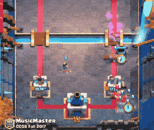 被对手用克隆完成绝地翻盘,红方选手上演了一出斗转星移,以其人之道还治其人之身。比起天狗克隆,这套以石头人为核心的克隆套,暴力程度有过于而无不及。石头人的炸裂伤害,飞满屏的小蝙蝠,加上樵夫阵亡后的狂暴效果,只需一个眨眼,公主塔灰飞烟灭。
