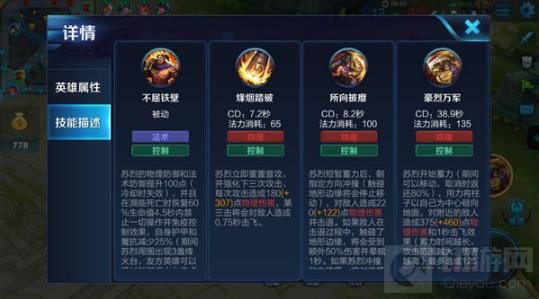 苏烈的一技能可以强化他下三次的普通攻击,并且强化后的普通攻击每次命中敌人时,都会为自身回复一定的生命值,借助自己的一技能,可以让苏烈在与敌人的战斗中将自身的消耗降到最低,同时苏烈一技能的冷却时间很短,在与敌人作战时,可以通过一技能不断的给敌人制造压力。