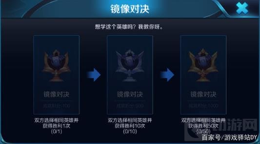 新成就—镜像对决,以双方都是相同英雄时的胜场数为达成条件,由于遇到相同英雄的概率并不高,因此黄金成就只需要胜利50场即可!