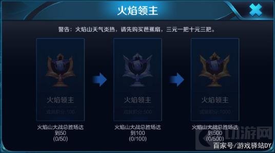 火焰山大战新成就—火焰领主,达成条件为胜场数,喜欢玩该模式的玩家还是很容易完成的,毕竟每局花费的时间不多!