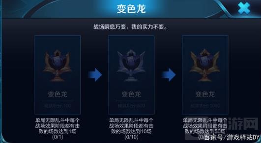 无限乱斗新成就—变色龙,以单局每个BUFF效果都有击败的场次为达成条件,完成难度较高,因此黄金成就仅需50场即可!