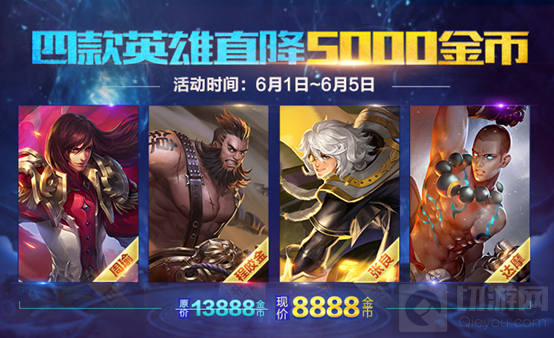 四款英雄周瑜、程咬金、张良、达摩8888金币限时折扣!您千万别错过~