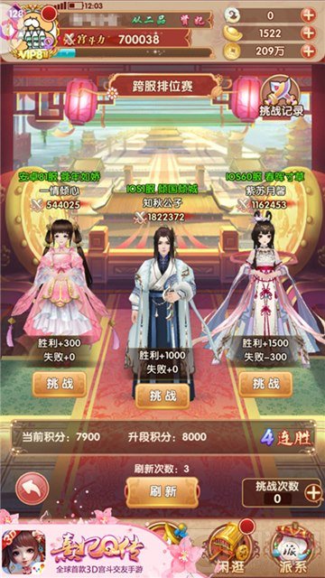 本周三中午12点整,《熹妃Q传》跨服排位赛入口正式开启,在持续两周的比赛期间,每位小主每日会获得5次免费挑战和3次刷新次数,每天0点系统会重置挑战和刷新次数。系统将会根据小主当前的段位,为小主们匹配段位相近的对手,每击败一个对手就能获得相应积分。因为每天的挑战次数有限,小主们一定要善用刷新功能,谨慎挑战哦!