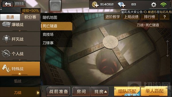 CF手游中刀战是玩家们比较热衷的一个玩法,近距离的肉搏才能够正真的展现玩家血与肉的激情。死亡隧道式刀战中相当经典的一个地图,今天切游小编就来说一说这个地图的对战技巧!