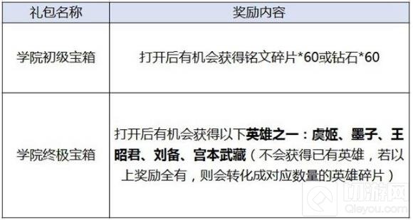 12月1日~12月11日,通过5V5匹配(含人机)及排位模式积累英雄熟练度,就能拿永久英雄宝箱。参与的英雄有英雄:宫本武藏、雅典娜、苏烈、白起、刘备、蔡文姬、李元芳、虞姬、王昭君、墨子。任意3个英雄达成二级熟练度,玩家就可获得一个学院初级宝箱;任意5个英雄达成二级熟练度,玩家就可获得一个学院终极宝箱。