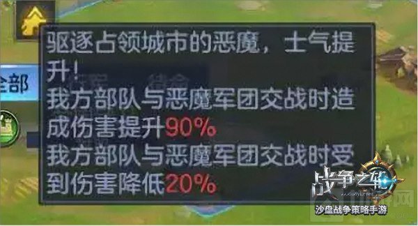 原来地图上的系统城市有各种免费的BUFF提供给联盟成员,前期是联盟把城市占领下来,BUFF包括:与恶魔军团交战时造成伤害增加x%、与恶魔军团交战时受到伤害降低x%