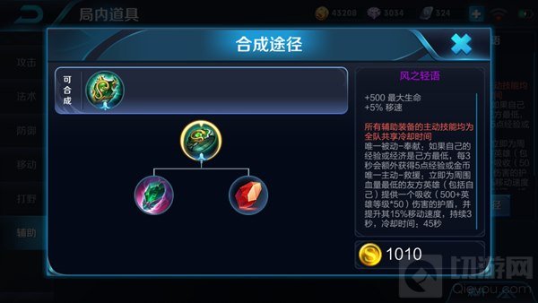 辅助装备里的良心装备,非常适合想要保护队友的小伙伴!被动技能说是一个小治疗也不为过,而且它还有一个很明显的优点:CD短!这就意味着,这件装备的CD甚至比某些英雄的技能CD还要短,你可以频繁使用它来改变战局!尤其是张飞这样的英雄,分分钟套若干护盾在队友身上,对手简直就要哭!