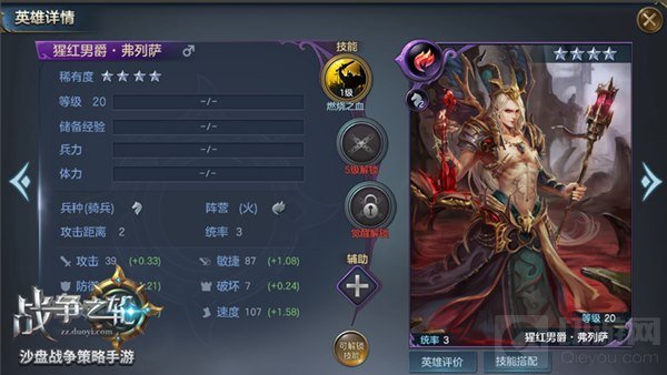 猩红男爵·弗列萨前四回合的伤害量相信在《战争之轮》所有英雄中都是名列靠前的存在!推荐阵容位置依旧是大营或中军,搭配技能诅咒锁链,秘法技能“燃烧之血”可使对面陷入四回合的法术伤害,伤害率22%,同时更是进入燃烧状态,堪称烈焰魔女贝拉娜的加强版!