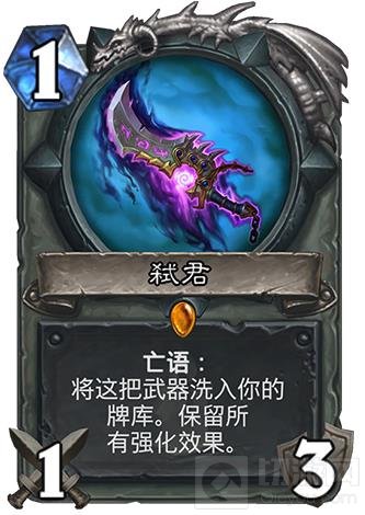 当前版本中骑士主流卡组鱼人骑,控制骑都可以将这张传说武器构筑进入卡组。鱼人骑随从足够另外也能给随从带来足够的BUFF加入这张卡大大加强了鱼人骑的后期作战能力。控制骑也能加入这张卡来不断通过武器控制场面。下个版本骑士或许铺场骑也能成为主流卡组,这张卡也能发挥出不错的作用。当前版本第一橙武。