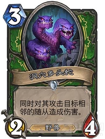 洞穴多头蛇,首先他有一个野兽属性那么在猎人卡组中就有了携带的理由。3费2-4的身材虽然亏一点好在我们的buff也足够配合。如果能站住场面相当于战士dk的武器影之哀伤,在随从交换上占据很大的优势所以带一张尝试一下看看效果。