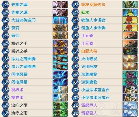 这个卡组的设计是降速,前期依靠低费的法术控制场面,比如大漩涡传送门、闪电风暴、妖术、火山喷发。同时建立起自己的场面威胁,比如土元素、白眼大侠、深渊魔物或雪怒巨人。