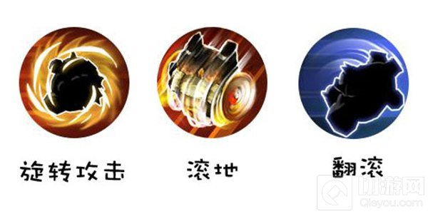 滚地:地上持续翻滚直至撞击到敌人。滚动时防御率增加,撞击敌人后将敌人推向后方,且攻击力增加。