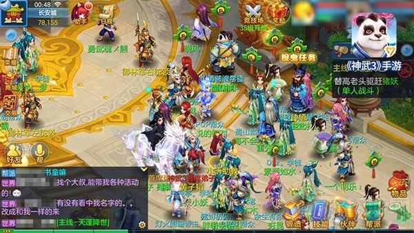 精美细腻的游戏角色形象、场景地图美术资源升级;任务系统等大量玩法创新,《神武3》手游公测当日吸引无数玩家前来体验,雄霸天下、四海升平、普天同庆、海纳百川四组新服瞬间爆满,人山人海盛况空前。为了回馈玩家热情,国色天香、天长地久、盖世英雄三组新服陆续加开,全方位保证广大玩家的游戏体验。