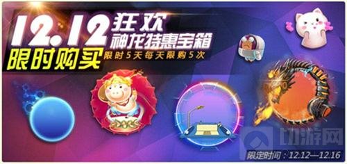 本次活动以狂欢双十二为主题,神龙宝箱再次开启,更新关键字花鼓舞、钛金光环时光旅行和机械神龙、炫光啾咪。