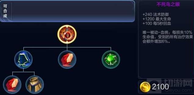 了解不死鸟之眼这件装备的玩家都直到,它的被动效果是让你受到的治疗效果提高10%,而之前即使低于50%血量也不过是提高到30%而已。但新版的不死鸟之眼完全不同,你每损失10%生命值就提升6%治疗效果,也就是说,如果你的血量低于10%时,回血效果可以提高到54%,这是一个非常恐怖的数字。