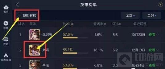 3、点击英雄榜单上的头像,可以跳转至奖励领取页面;(先勾选:我拥有的,快速找到可领取奖励的英雄)