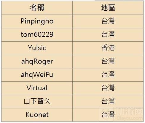 玩家票选选手名单
