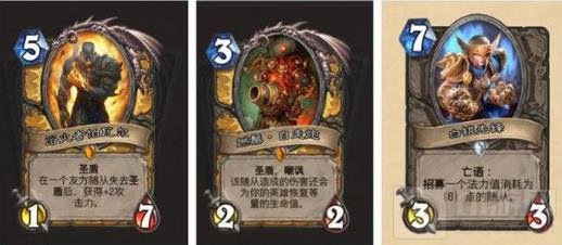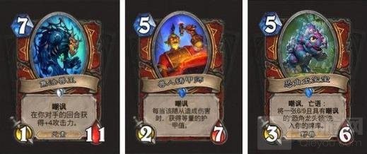 战士1、2、3攻击力最合适的随从分别是焦油兽王、兽人铸甲师、恐角龙宝宝,可能焦油稍弱一点不是构筑卡牌,其他两张本来就属于后期战士必带的随从,所以战士用新橙卡是完全OK的,九费四个随从都是大屁股,很强并且不用改变很多的防战套牌,仅需要稍作调整就可以用。