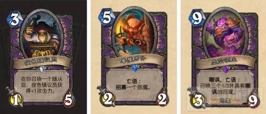 术士1、2、3攻击力最适合随从分别是夜色镇议员、着魔男仆、虚空领主,其实术士新的橙卡“林恩”也是三攻,但那张橙卡操作难度太大,需要专门的卡组构筑,并且多半是娱乐套路,本身上面的三张术士卡牌都适合随从流构筑的术士卡组,DK恶魔术也可以加入新的中立橙卡,感觉强度还是不错的。